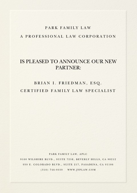Park Family Law, APLC is pleased to announce our new partner: Brian I. Friedman, Esq.